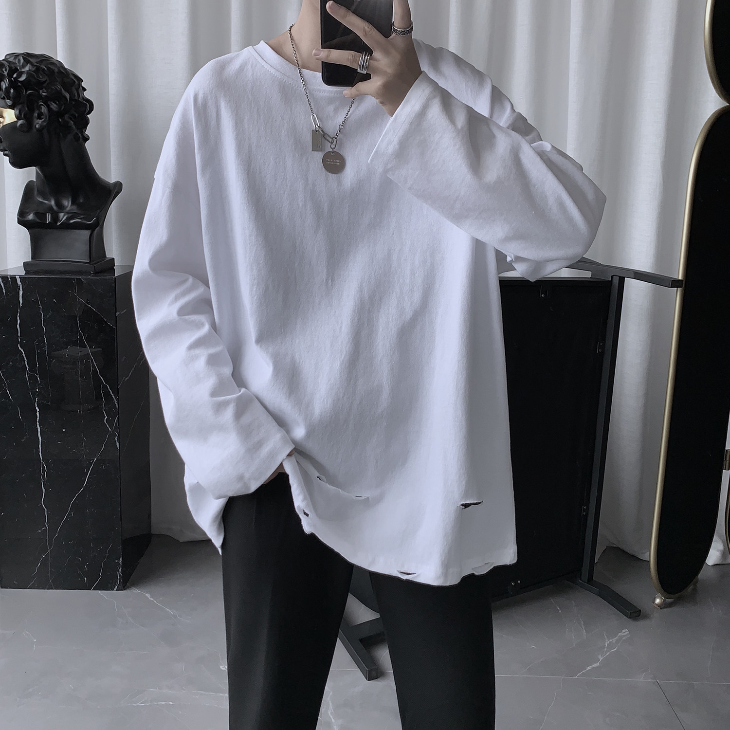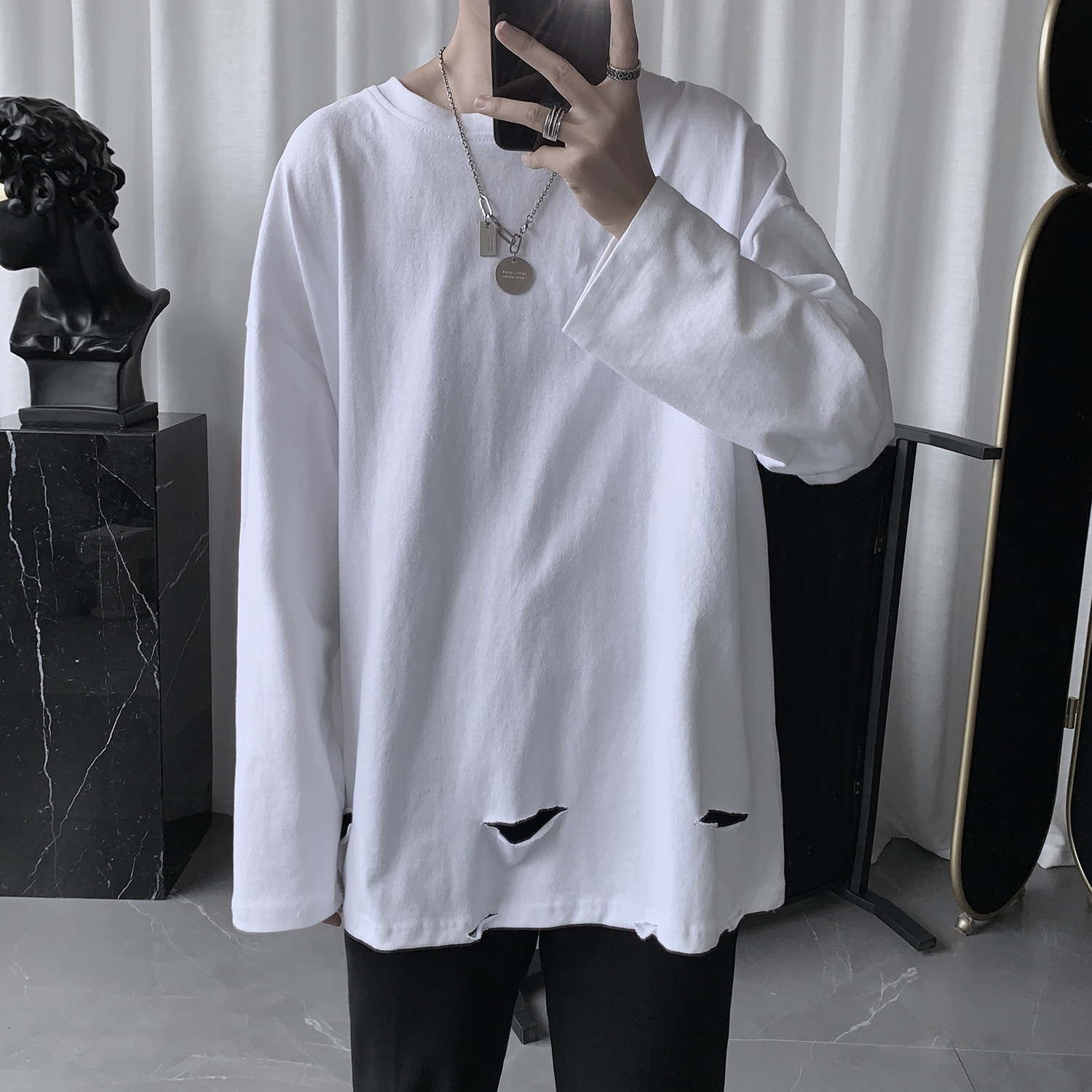 Men's hole-hole long-sleeved T-shirt men and Korean edition of loose in harbor windshirt in autumn blouse men's coat