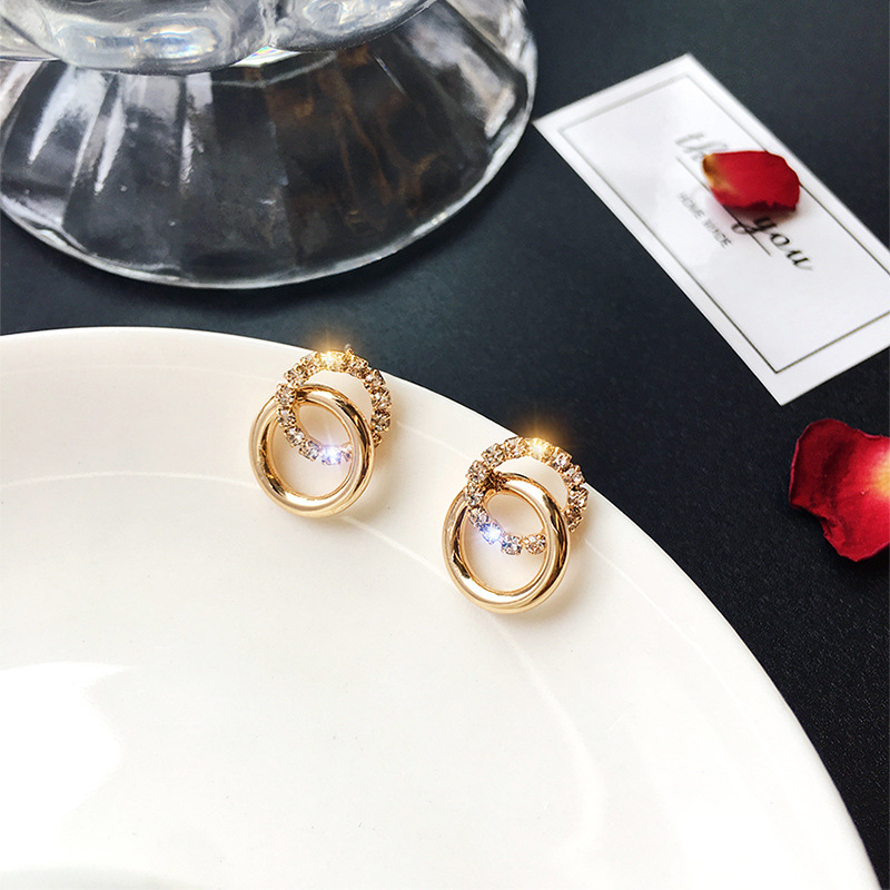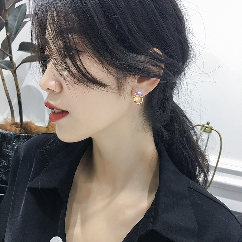 Dongdaemun simple and compact earrings personality ear jewelry Korean temperament all-match 2019 new trendy female earrings silver needle