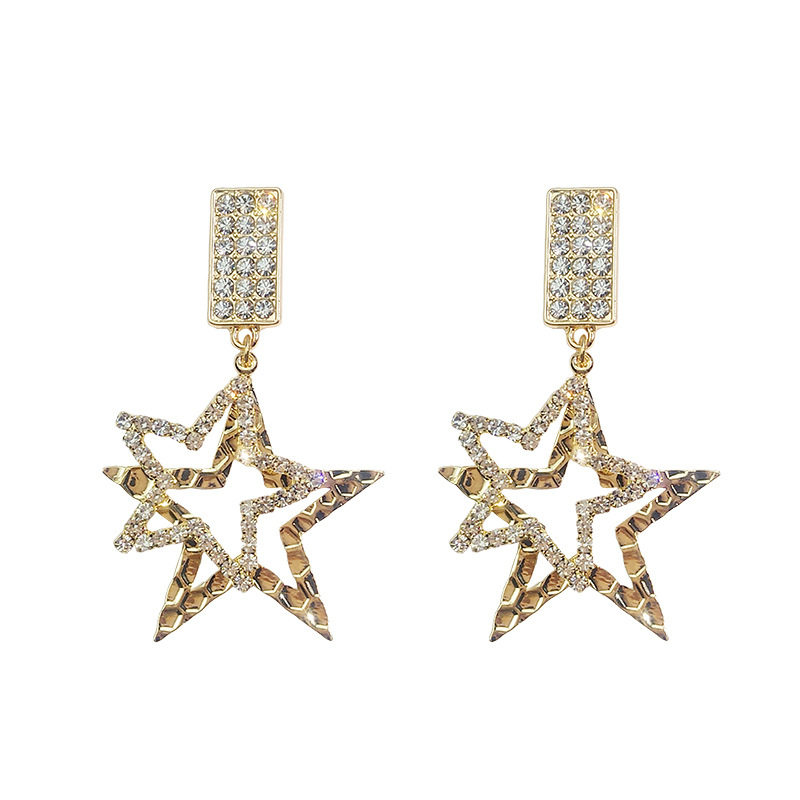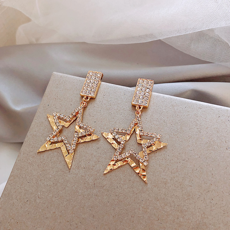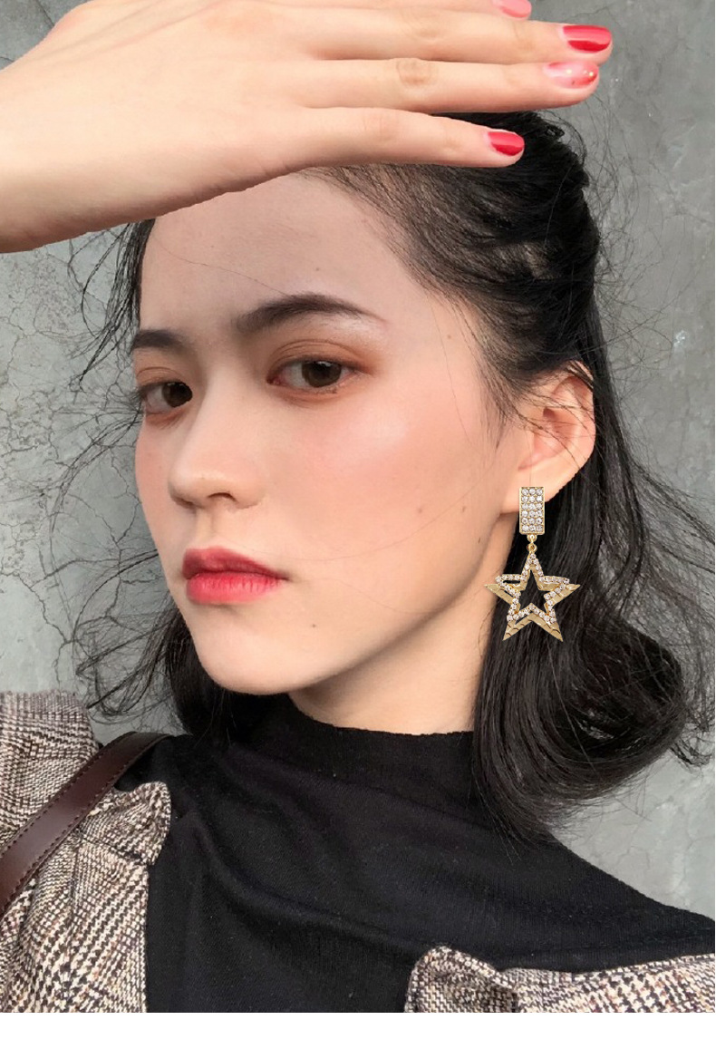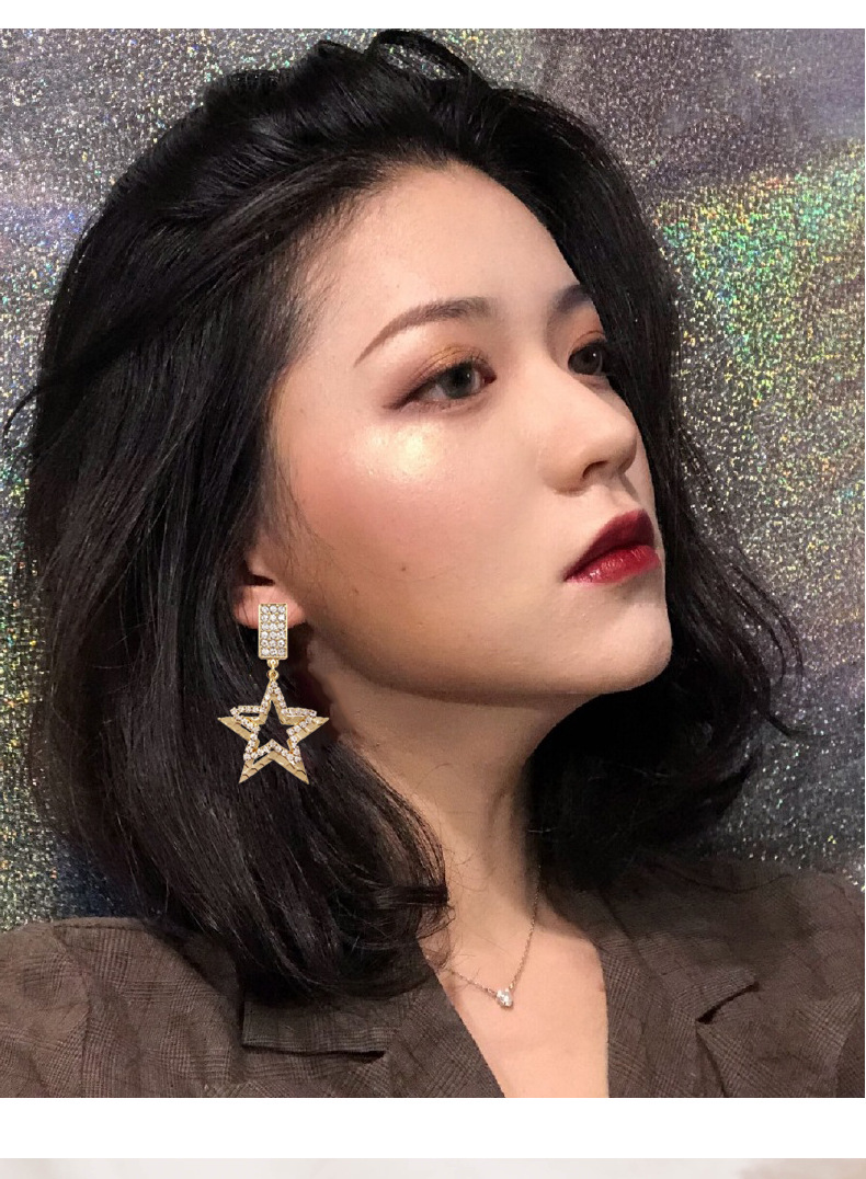 Korean personality earneedle atmosphere 925 silver needle red exaggerated pentagonal earrings feminine long - plate ear ear