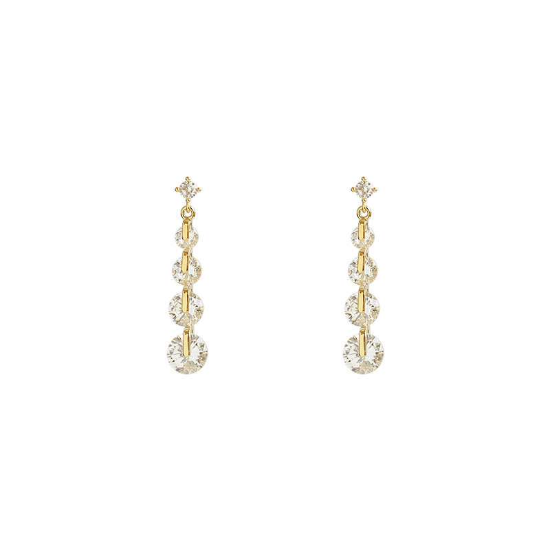 Bright zirconite earrings female streamlined face thin stream stream Su needle simple temperament Korean ear crash pure silver ear needle