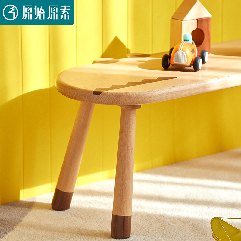 Original original vegetarian full solid wood children long bench beech wood bench domestic short stool Animals creative cartoon small bench