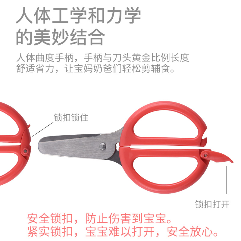 Japan Richell Litchell Children's Stainless Steel Supplement Scissors Baby Food Scissors Portable Grinding Artifact