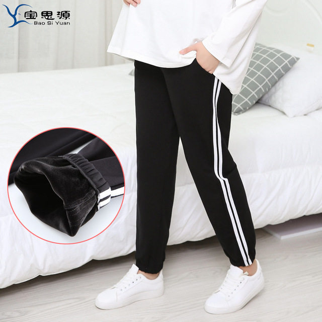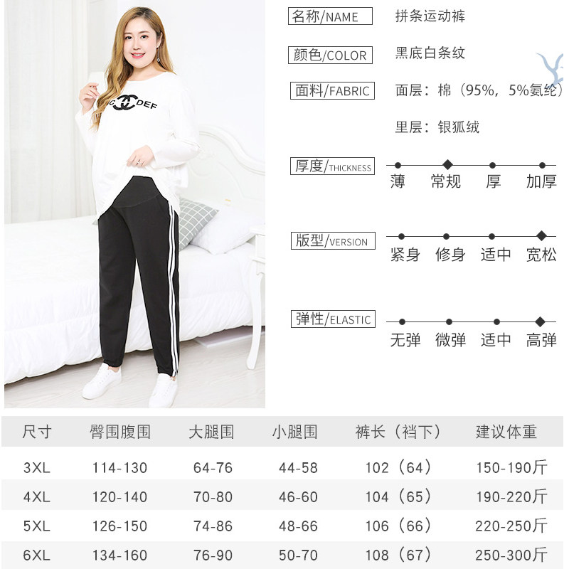 Plus fat plus size pregnant women's pants 200 catties cotton loose outerwear high waist belly support autumn and winter plus velvet thick section 300 sports pants
