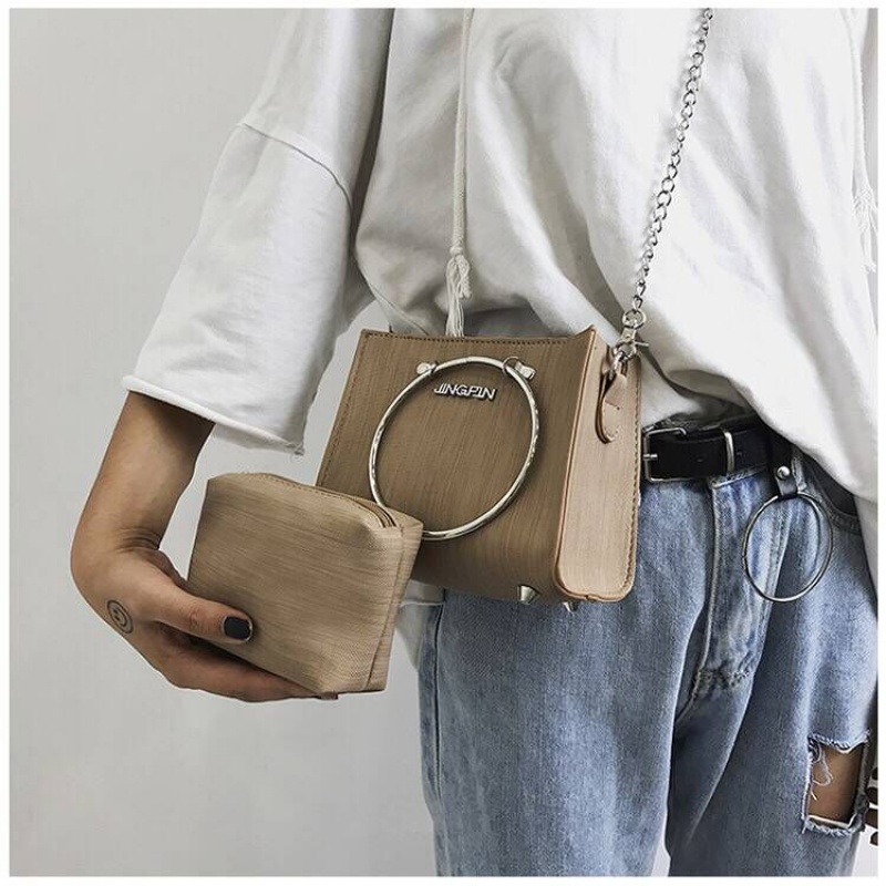 Small bag female Korean fashion wild Cross women's bag ring chain letter portable shoulder bag