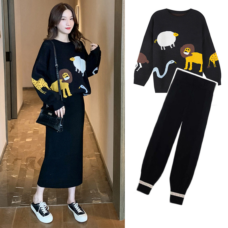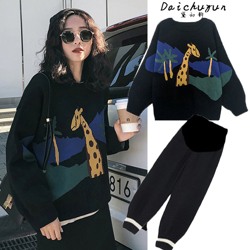 (kura) single sweater animal sweaters gush black grandma pants polo dots plus apricots color granny pants rhomboid sweatpants black granny pants black granny pants (plus suede) polo dots sweaty grandma pants