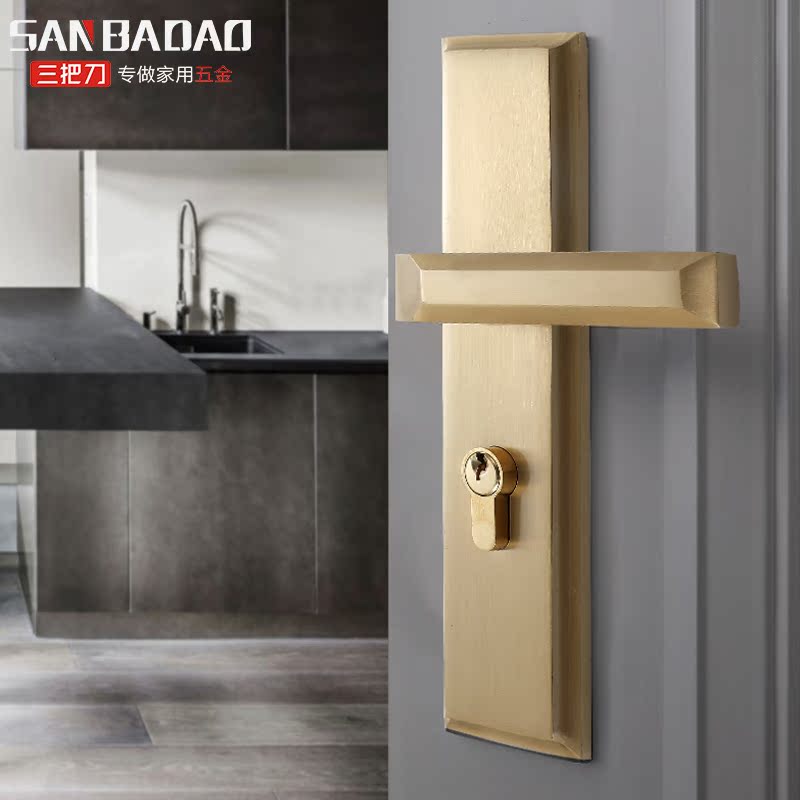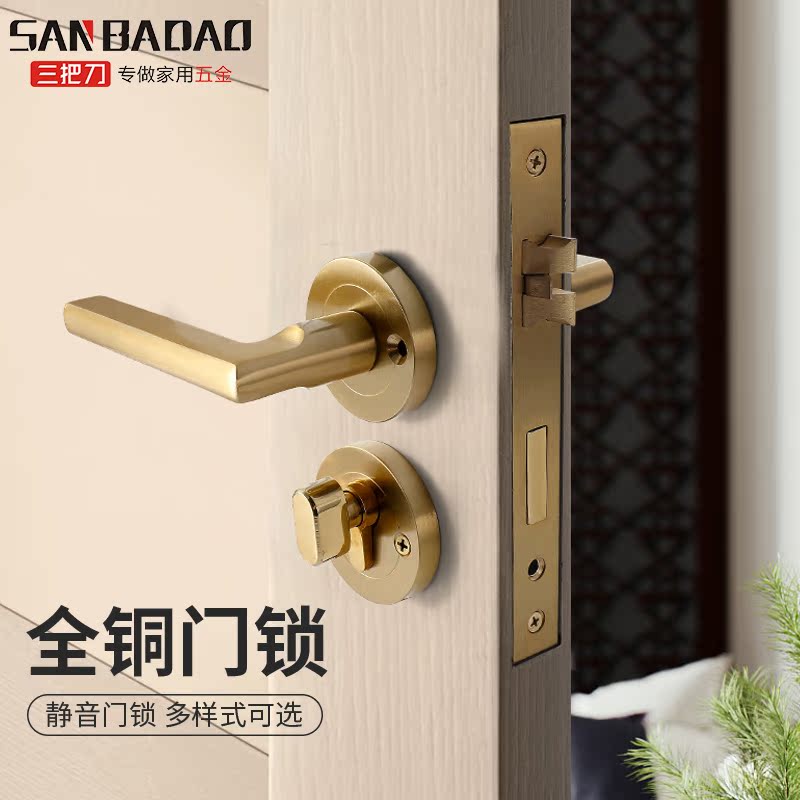 New Chinese pure copper bedroom silent door lock copper brushed room home universal modern all copper solid wood door interior