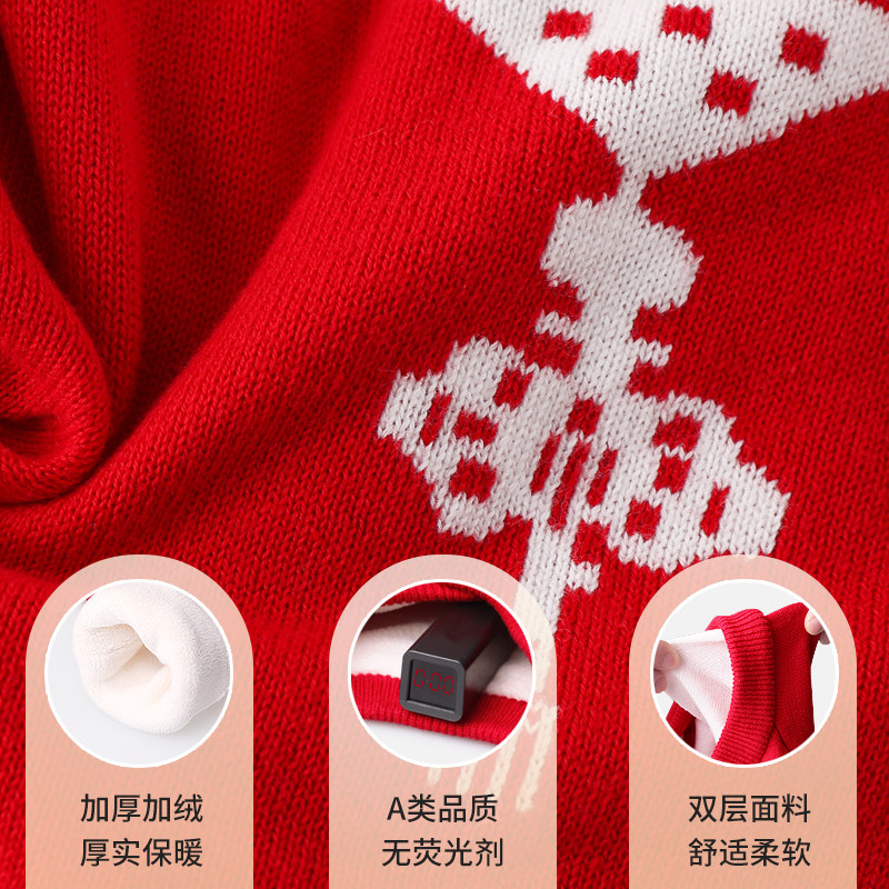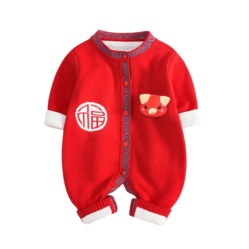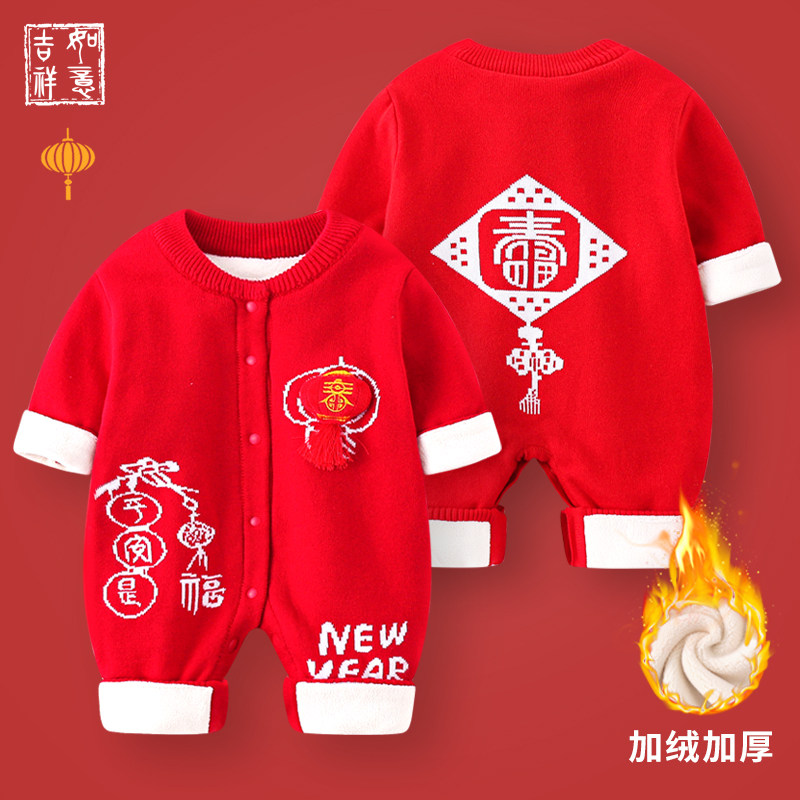 Baby jumpsuit New Year's Eve clothing Autumn and winter clothing Baby Hayi knitwear Climbing clothing plus velvet thick infant sweater suit