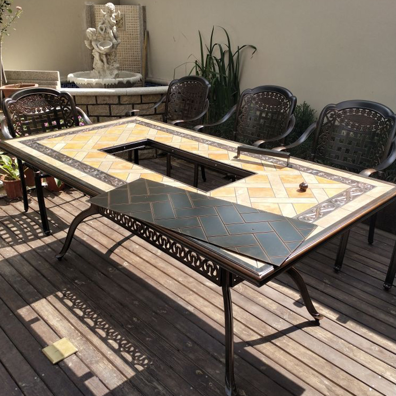 Yuanmao outdoor barbecue table courtyard barbecue table household charcoal table outdoor cast aluminum table and chairs villa terrace combination