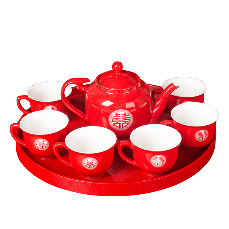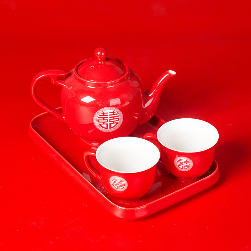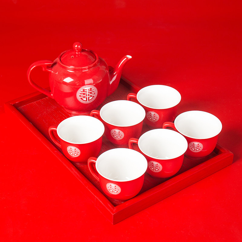 China Red Wedding Toast Tea Tea Tea Set Group Wedding Celebration Tea Cup Newlyweds Newlywed Upscale Teapot Tea Cup Nursery
