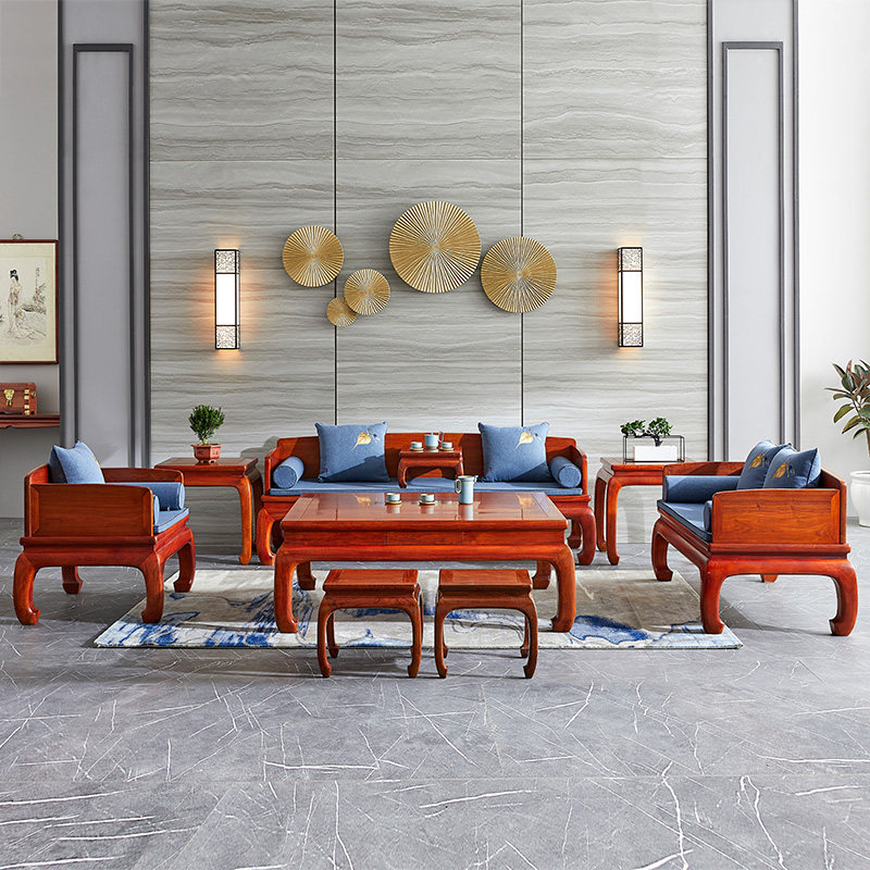 Red Wood Furniture Myanmar Flowers Pear Wood Sofa Combined Big Fruits Purple Sandalwood Living Room New Chinese Whole Fitted Vegetarian Noodles Solid Wood Sofa