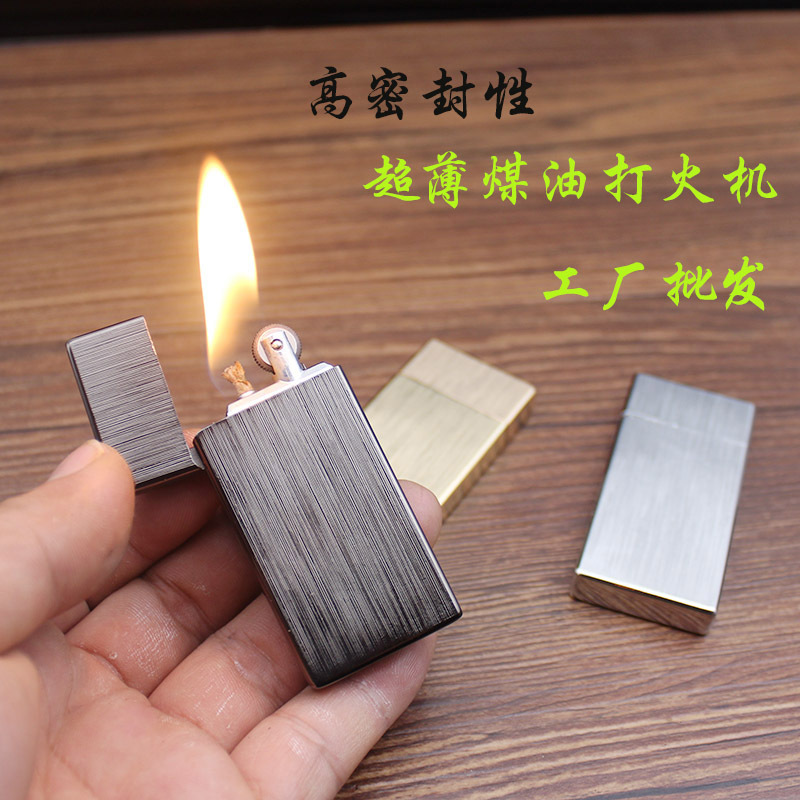 Ultra slim lengthened narrow section Ladies drawing face light plate High sealing kerosene lighter old side slip business gift