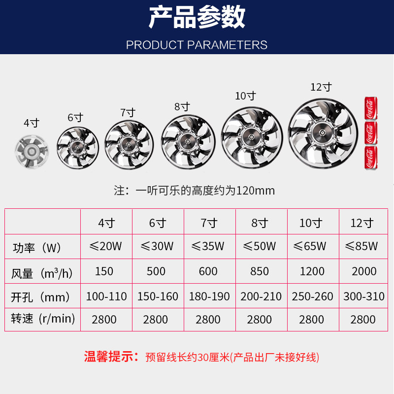 Exhaust fan Kitchen ventilation fan Powder room duct fan strong exhaust fan Household exhaust fan 4 6 7 8 inches