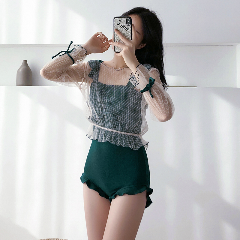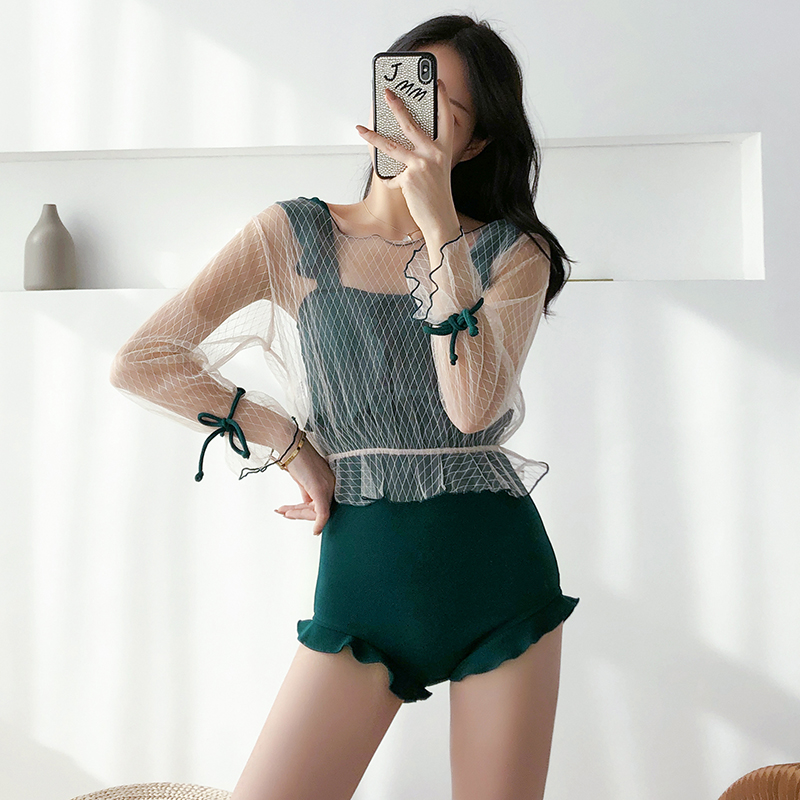 Girl 2021 new swimsuit female summer sexy one-piece conservative thin belly cover student seaside fairy small chest cute