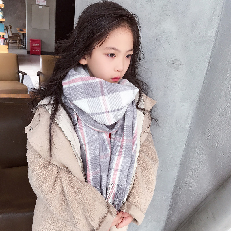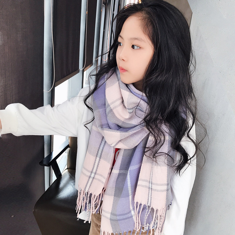 Autumn and winter children's warm scarf Korean version of the fashion men and women's plaid thickened long version of the girls literary tassel collar