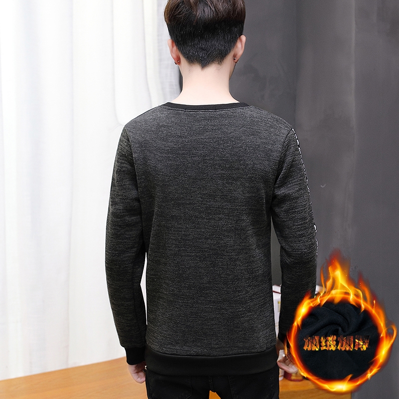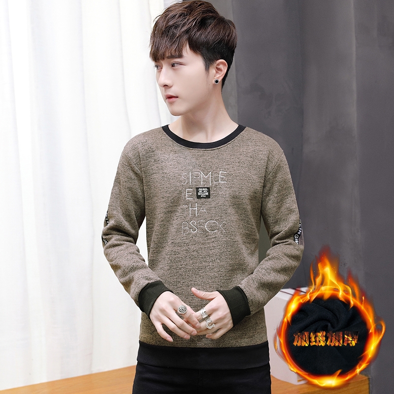Autumn and winter warm tops men's autumn clothes one piece can be worn outside plus velvet padded underwear slim fit youth bottoming shirt