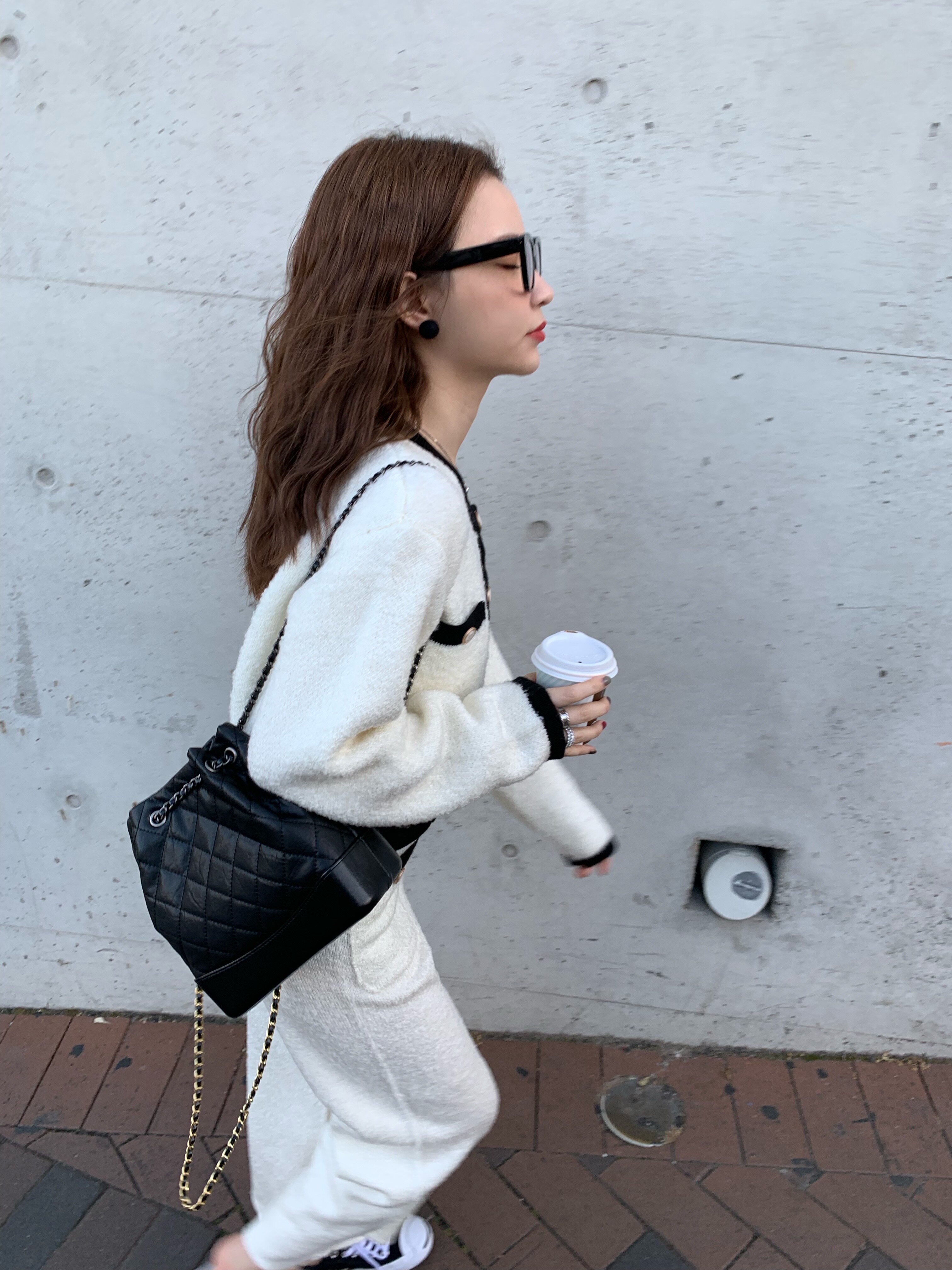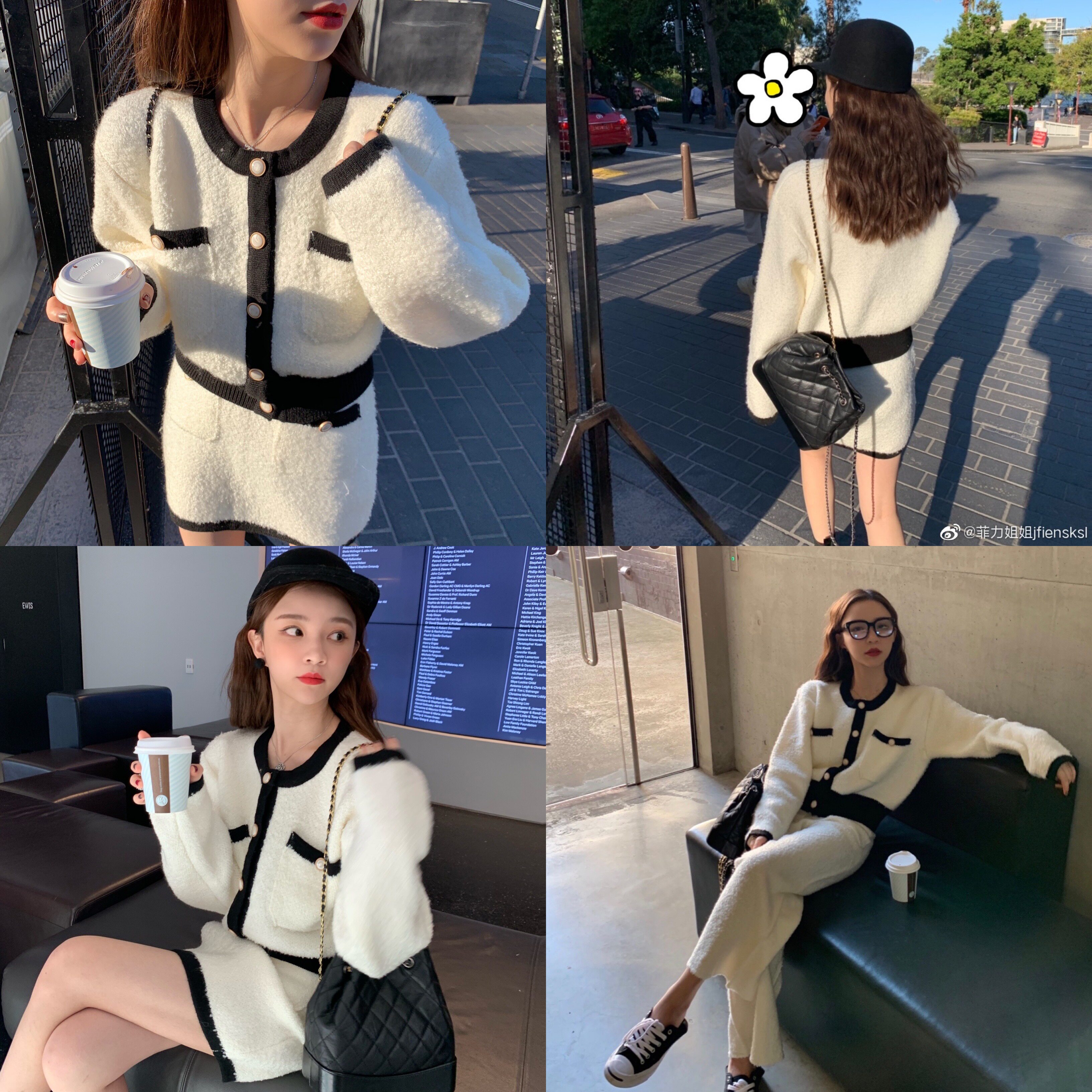 Mrs Qian socialite contrast color wool cardigan jacket jacket women's knitted short temperament round neck wool coat