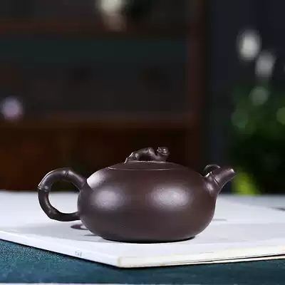Yixing purple clay pot Qian Huafang full handmade original mine purple mud Tianyuan bamboo leaf home kung fu engraved gold set
