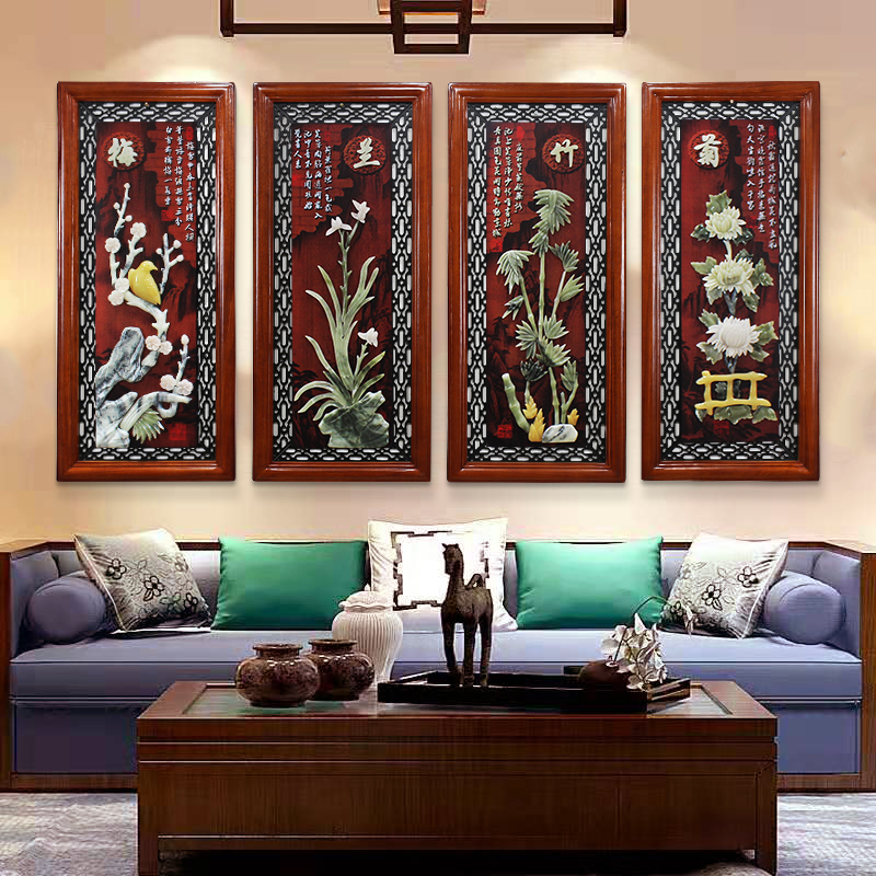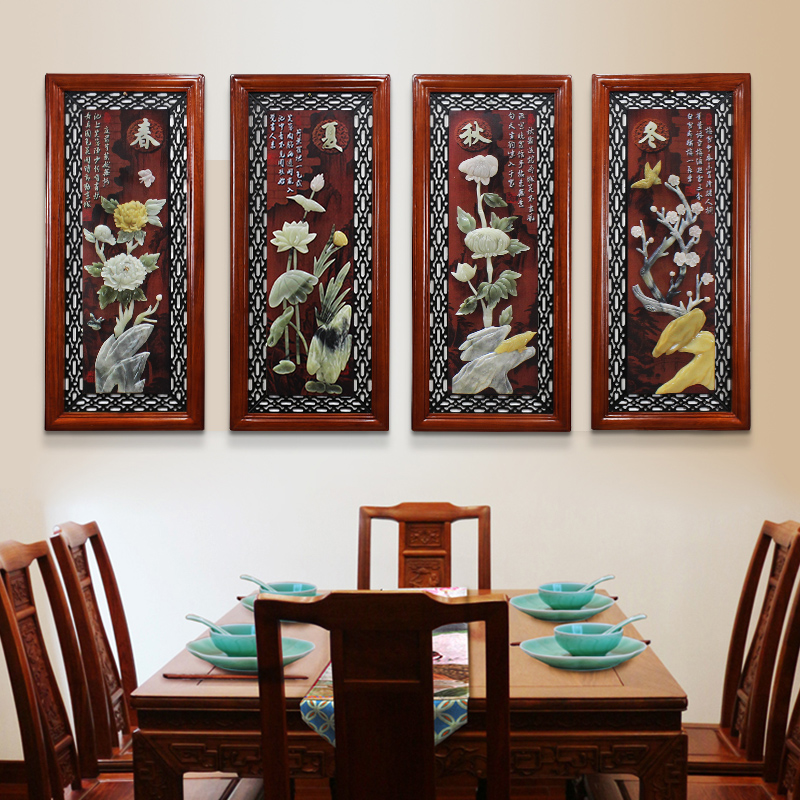 Spring Summer Autumn Winter Hanging Painting Chinese Style Living Room Sofa Background Wall Decoration Painting Dining Hall Wall Decoration Four United Jade Sculpture Mural Painting