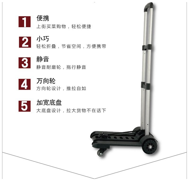 Universal Wheels Luggage Caravan Aluminum Alloy Ralever Car Folding cart Students with a pull-bag hand pull cart load bearing 50KG