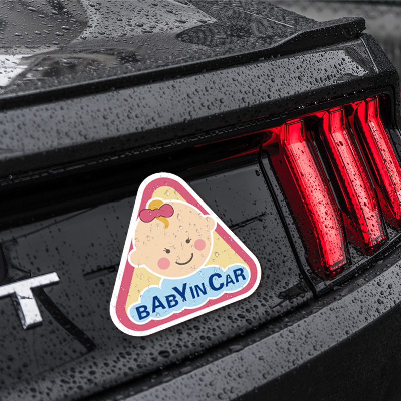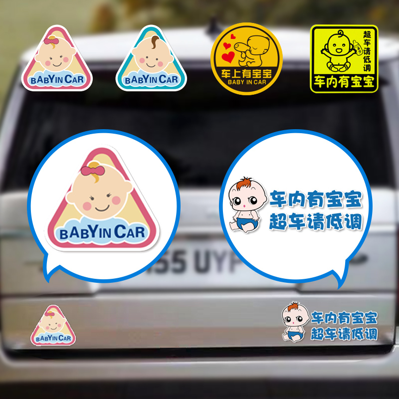 (Magnet) There is a baby in the yellow round car (Magnet) Rectangular red, black and yellow baby bottle (Magnet) Die-cut blue nine white baby bottle (Magnet) There is a baby in the yellow square car (Magnet) English boy