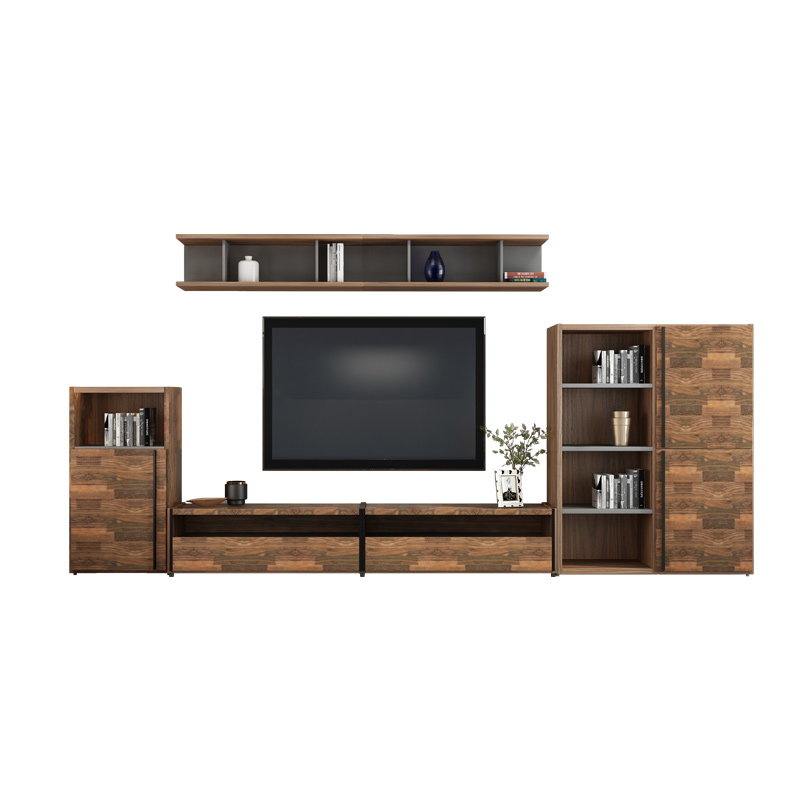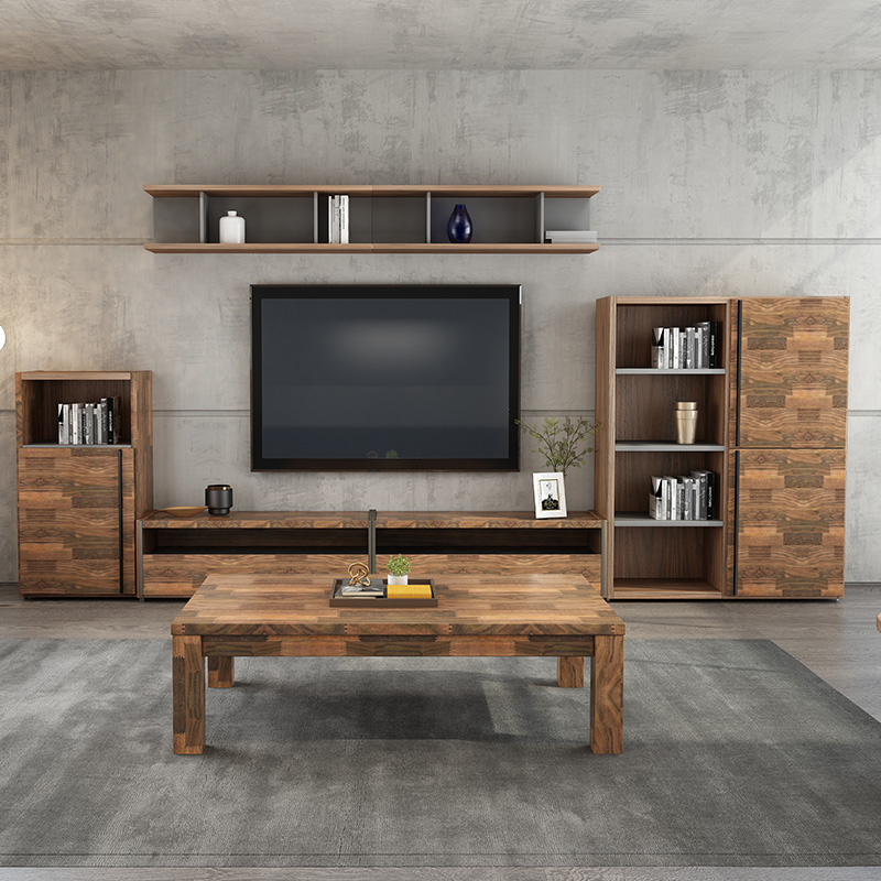 Easy To Move Sub-Home Innate Living-room Black Walnuts TV Cabinet Tea Table Combo Wall Cabinet Extremely Minimalist type combined suit