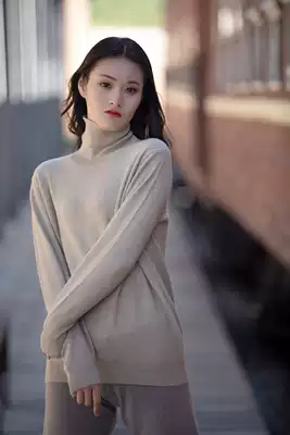 Non-dyed 100% cashmere high lapel collar women cashmere sweater pure cashmere pullover sweater