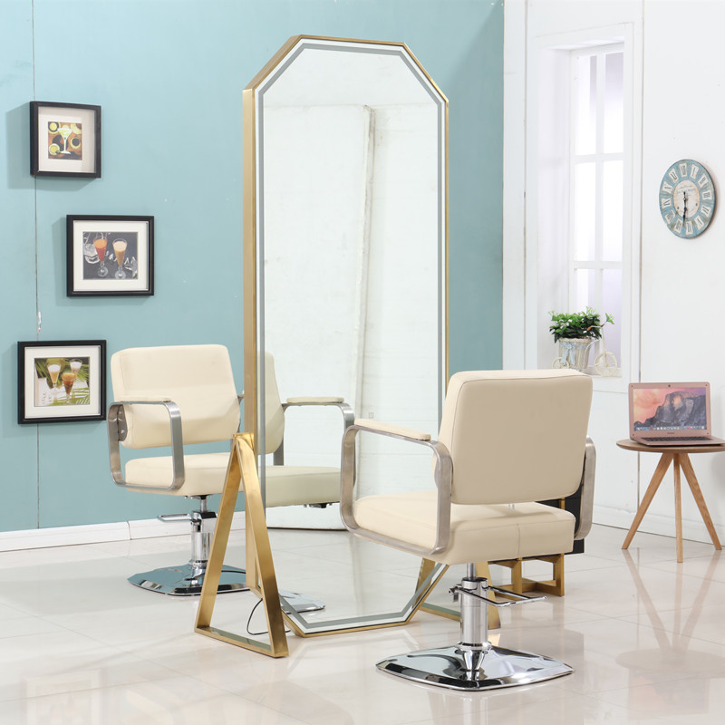 Net red Hairdressy Shop Mirror Table Beauty Hair Mirror Hair Salon Special Stainless Steel Rose Gold Inlaid Side Mirror Table Cut mirror