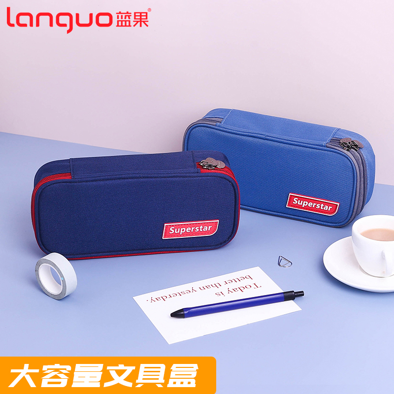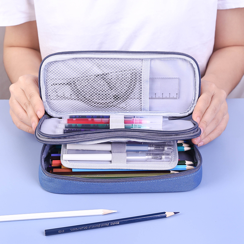 Blue Purpose Stationery Box Boys Practical Simple Multifunction Pencil Box Three layers Creative Brush Pencil Box Large Capacity Junior High School Students Use Strong Wear Resistance and Durable Pencil Bag
