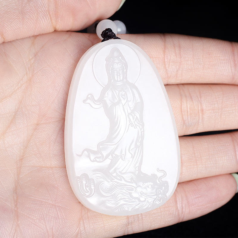 Silicon Treasure and Tian jade Goat Fat White Jade Guanyin Pendant Men Jade Jade Jade Pendant Pendant Natural Jade Pendant Jade Necklace