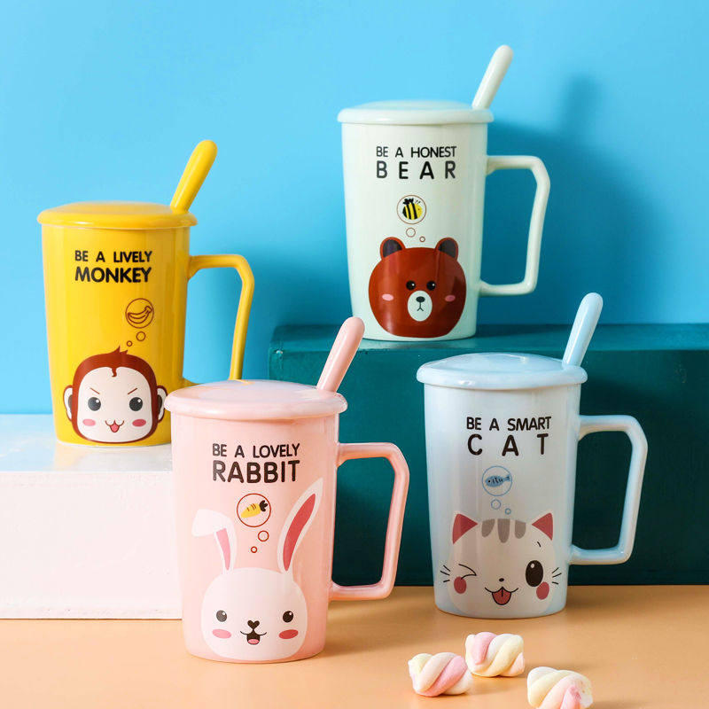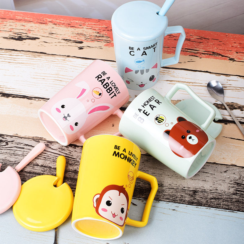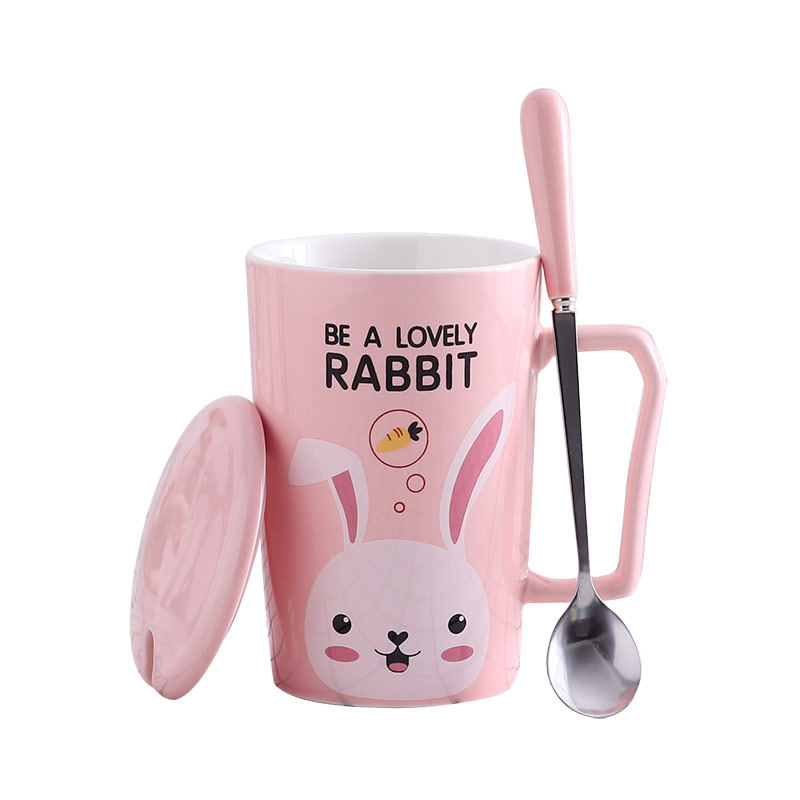 Ceramic mug female with lid spoon Nordic ins girl cute creative personality piglet Cup home couple Cup
