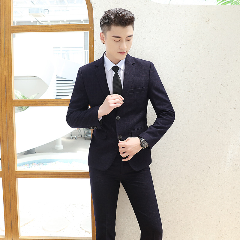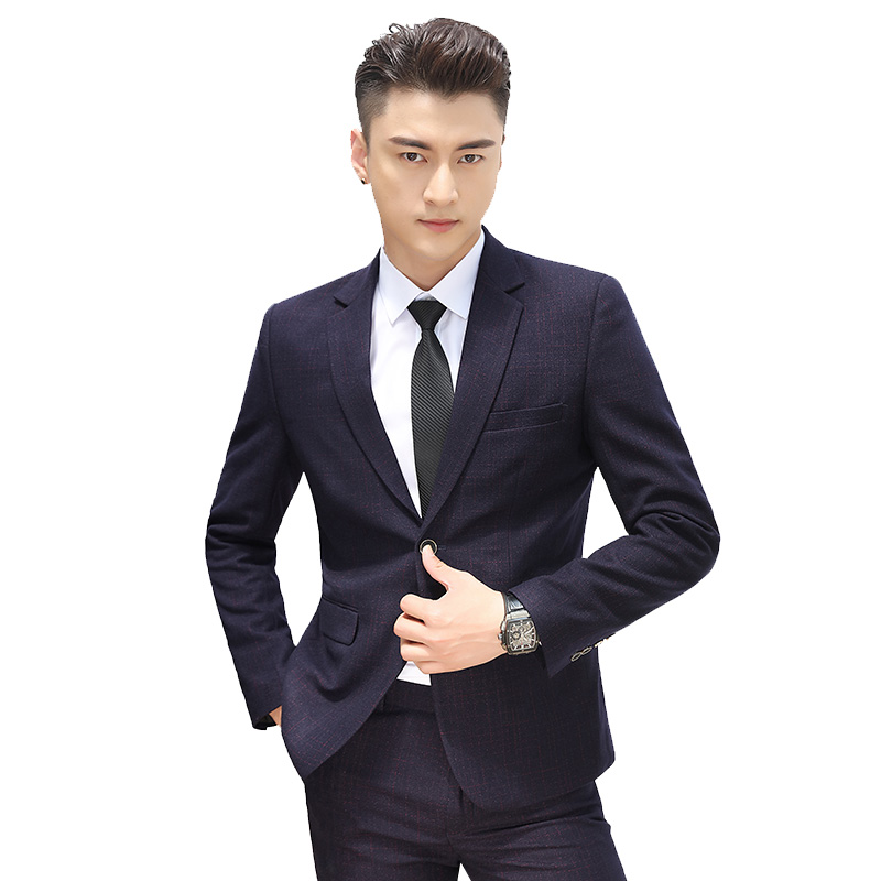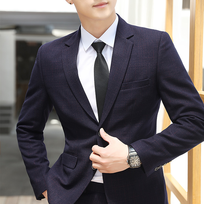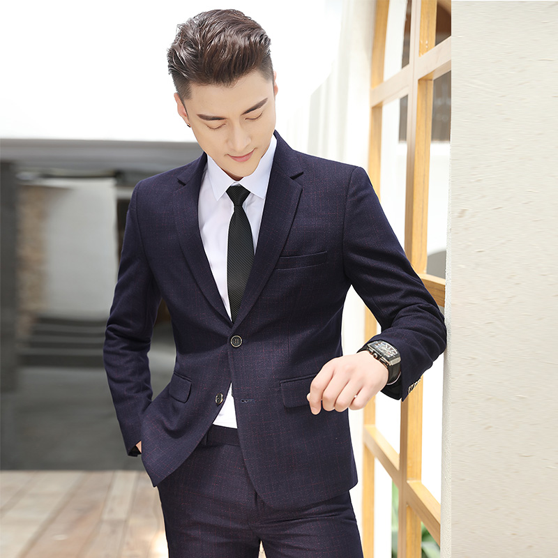Suit Suit Young Men Plaid Leisure Business Wedding Office Suit Groom Suit Dress Tide Host Suit