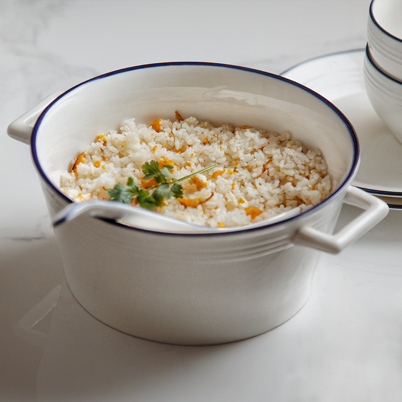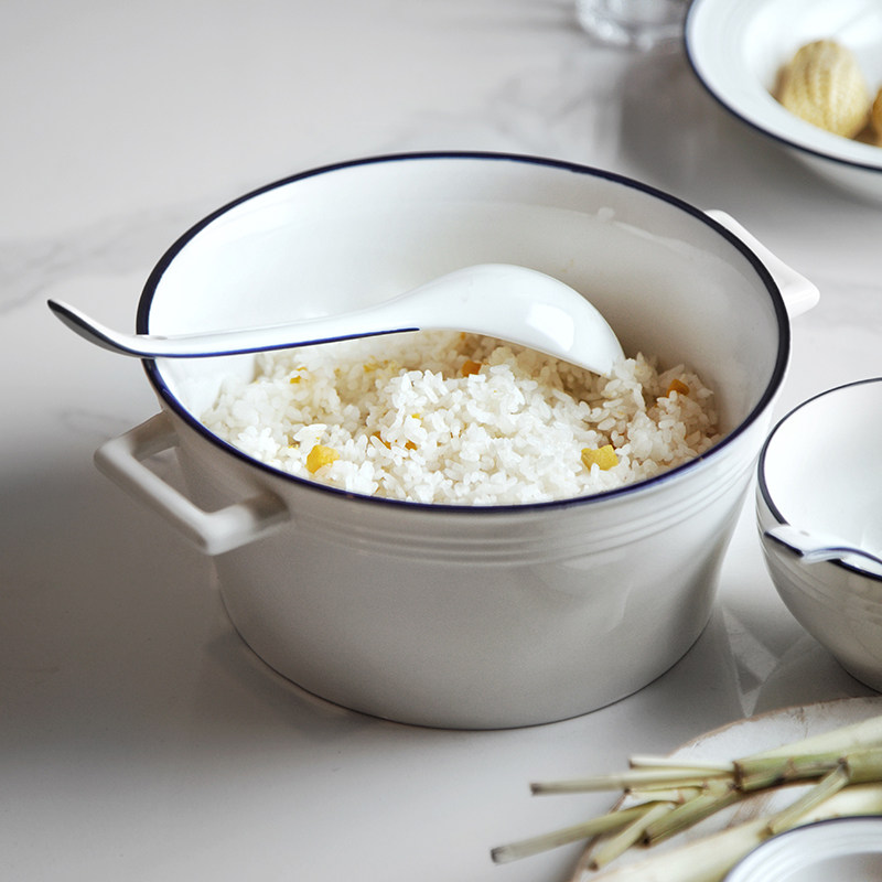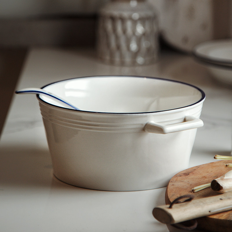 Double Ear Bowl with ear strap Take the bowl Bubble Noodle Soup Bowl ceramic Home Big Personality Creative Day Style Blue Side Burn