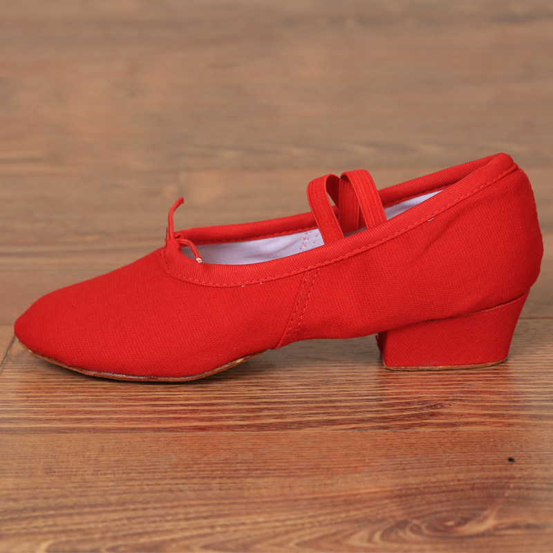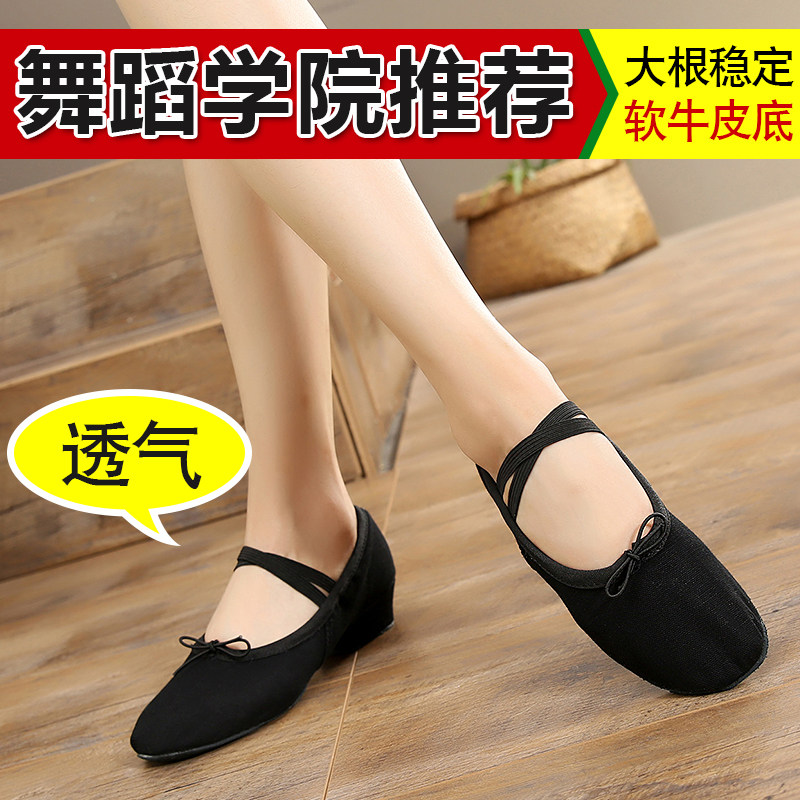 Dance shoes women's soft soles exercise shoes adult strap black dance shoes canvas performance shoes teacher shoes ballet shoes