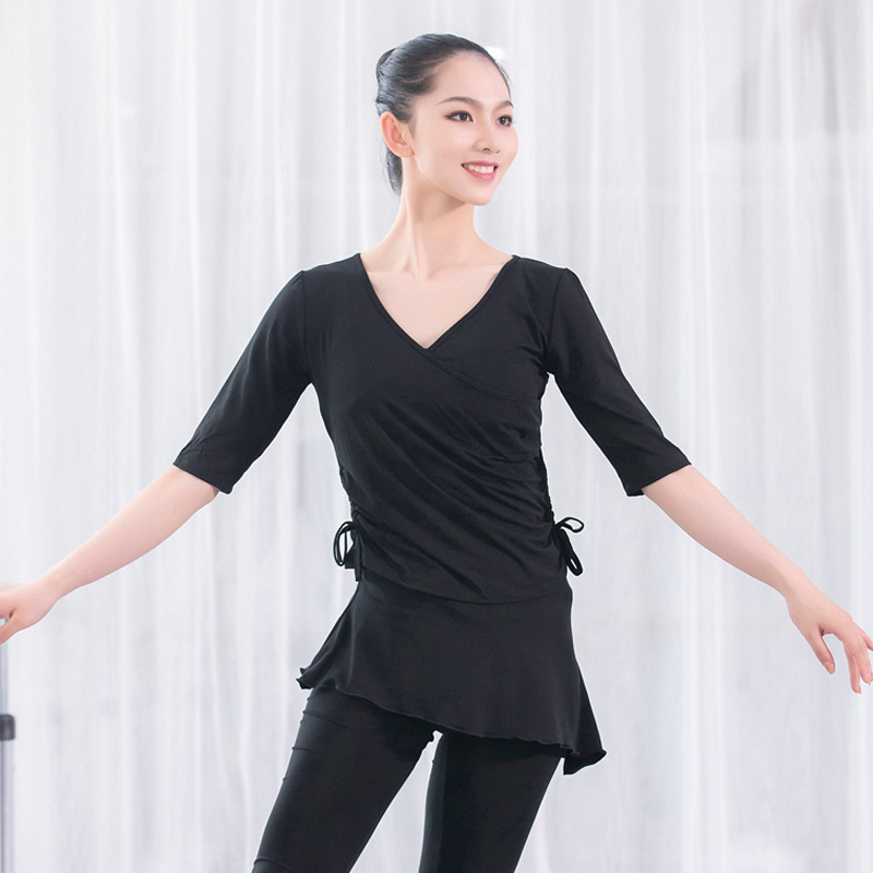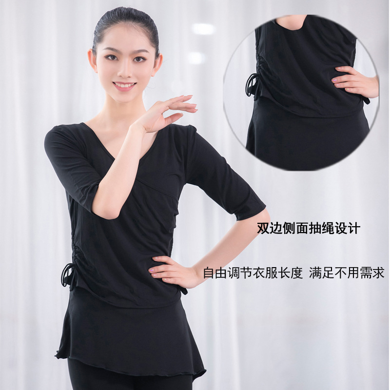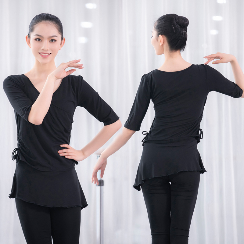 Dance practice clothes top women's national dance dance clothes black body rhyme teacher basic training clothing modal sleeves