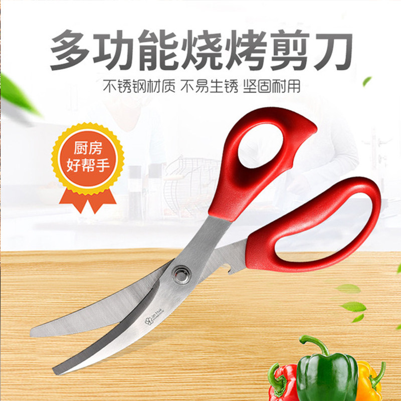 Kitchen Scissors Han Version Grilled Stainless Steel Scissors Multifunction Food Cut Curve Type Kitchen Scissors Kitchen tool