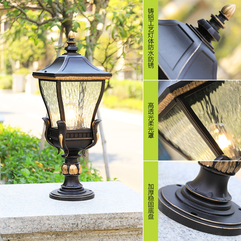 Outdoor European style stud lamp simple waterproof garden door pier wall head light American outdoor villa courtyard wall lamp