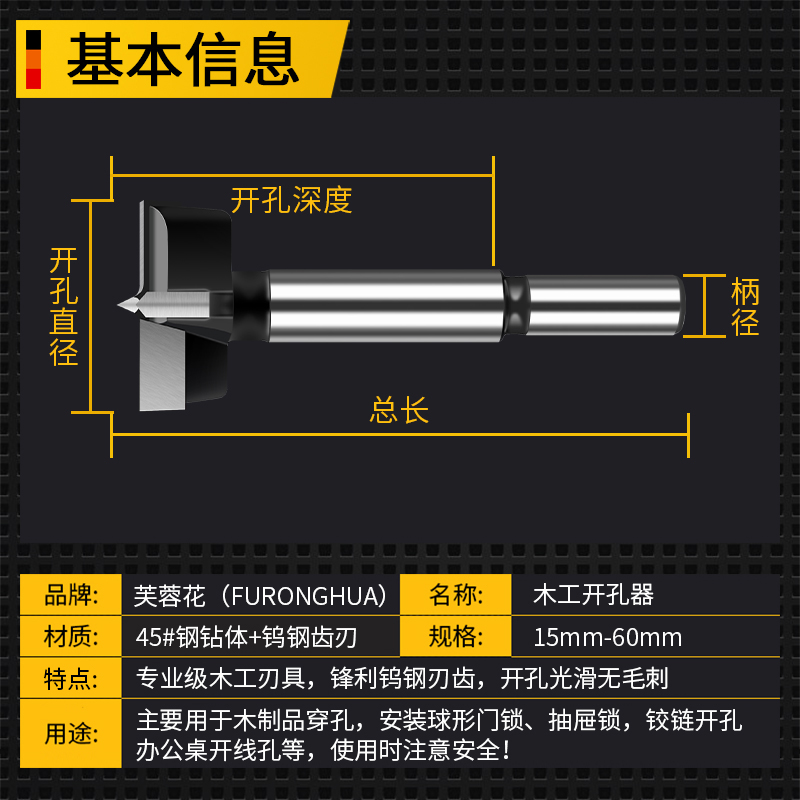 Industrial-grade drill woodworking drill bit wood plank overall cabinet door and window drawer hinge punch round hole reaming artifact