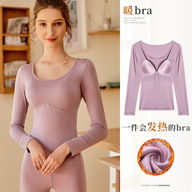 Warm Clothes Woman Single Piece Blouse Fever Beating Undershirt Invisible Autumn Coat With Beating Bottom With Chest Cushion One-piece Underwear