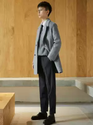 knighttom autumn and winter loose casual pants woolen trousers neutral women's black gray wool nine-point straight pants