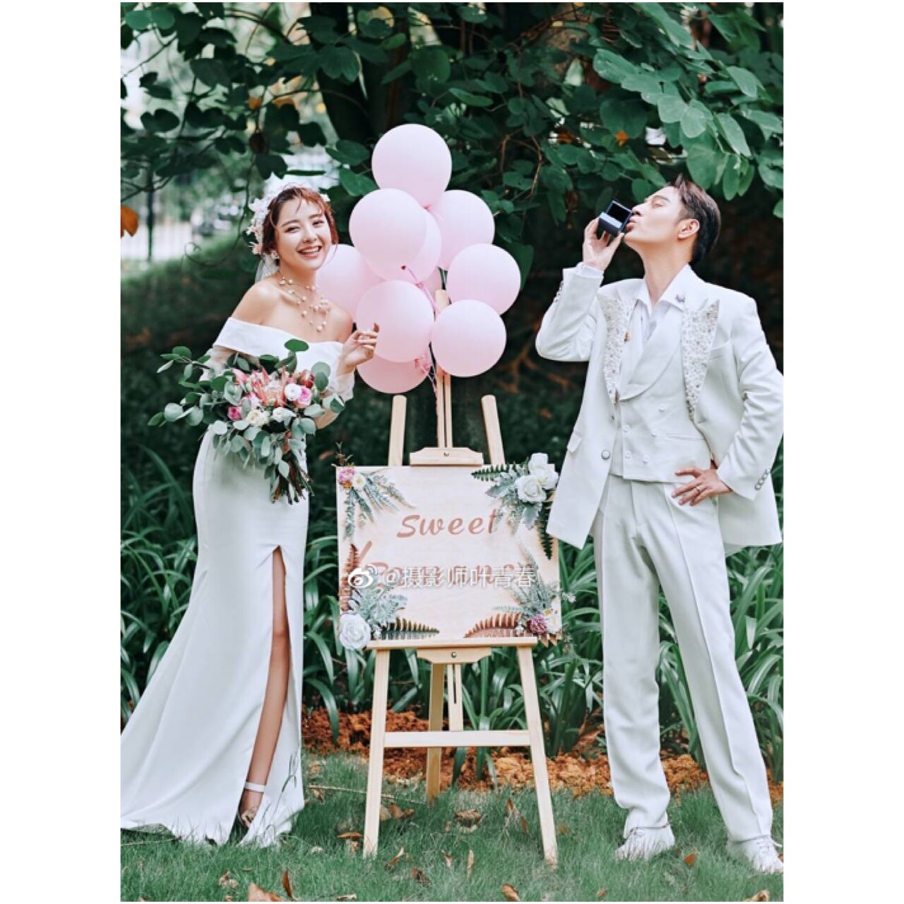 Exhibition shelf board Flower Balloon Gift Box kit Three 1314 Balloons A Set White Exhibition Shelf Board Flowers Hemp Rope Log Exhibition Stand A Silver Wine Bottle A Golden Wine Bottle A White Balloon 10