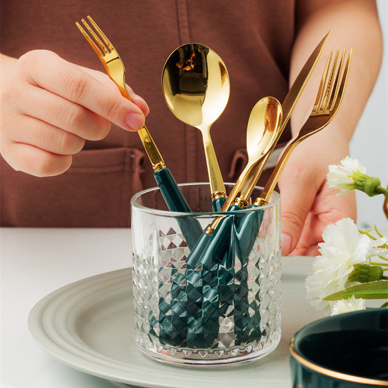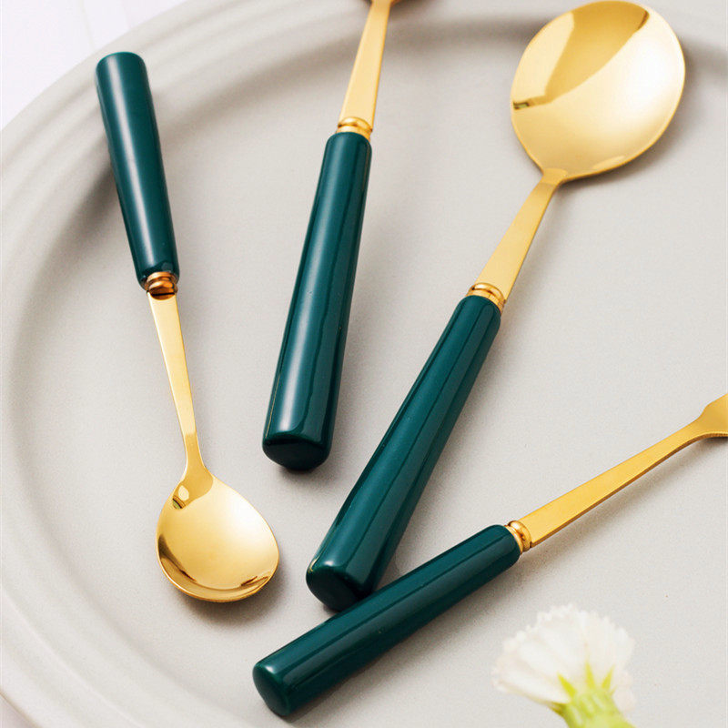 Emerald Ceramic Handle Western Food Knives Household Steak Tableware Nordic Court 304 Stainless Steel Knife Fork Spoon Set