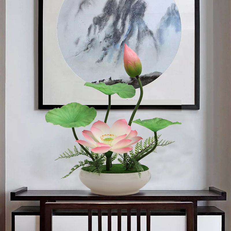 Feel imitation lotus lotus flower art set ornaments new Chinese style living room tabletop bonsai fake flower decoration decoration