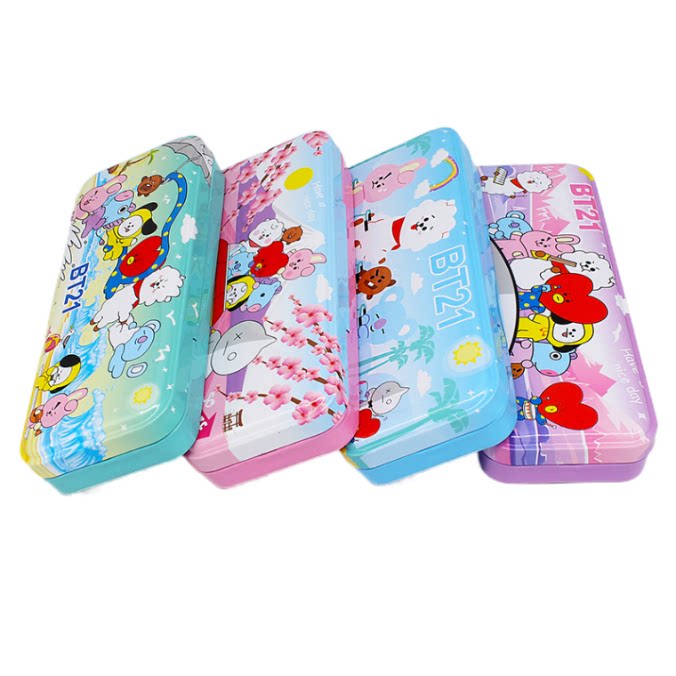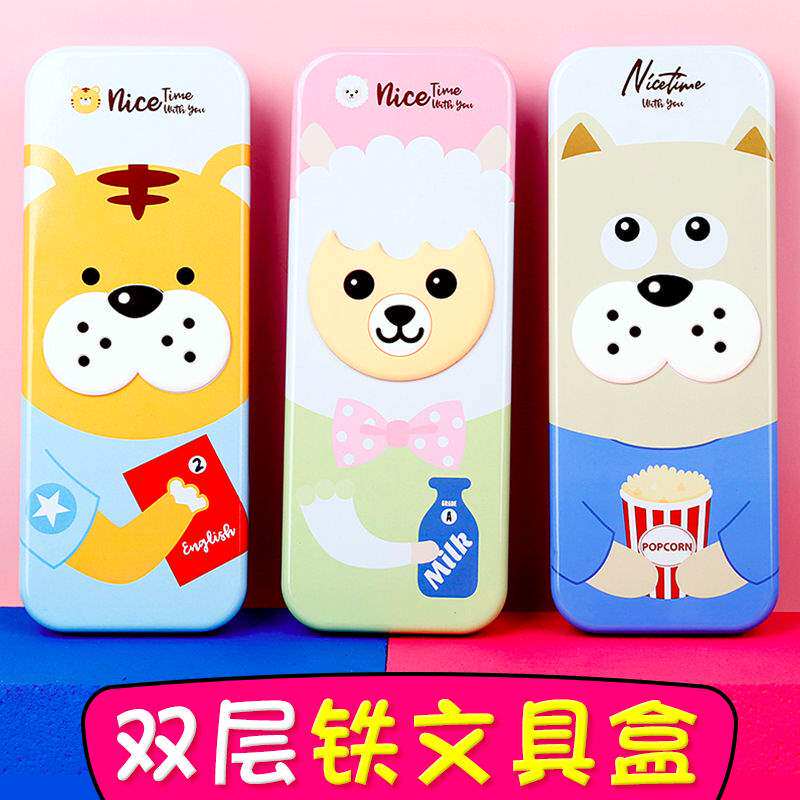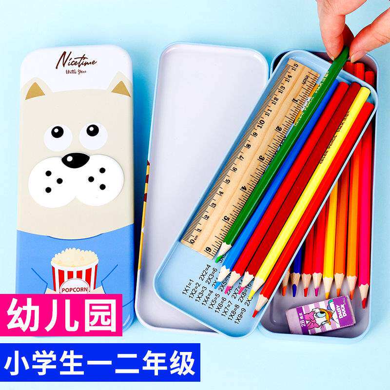 Kindergarten double layer with multiplication table formula stationery box Male and female students Primary school students Children with iron pencil box Preschool