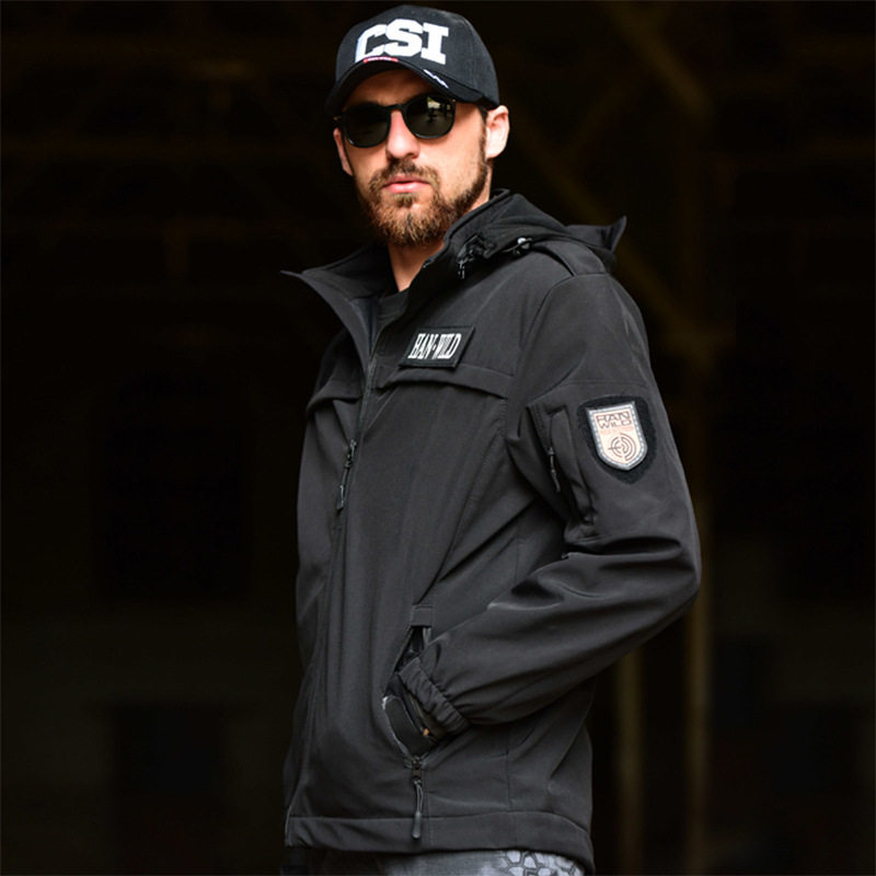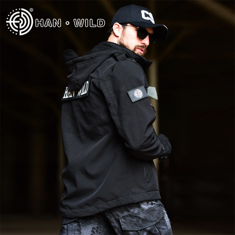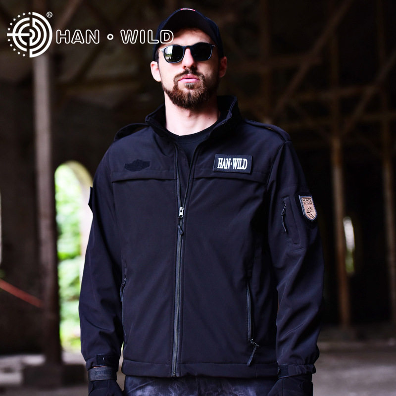 Hanye soft shell duty suit Black combat training suit plus velvet stormtrooper suit suit men's windproof combat suit autumn and winter jacket