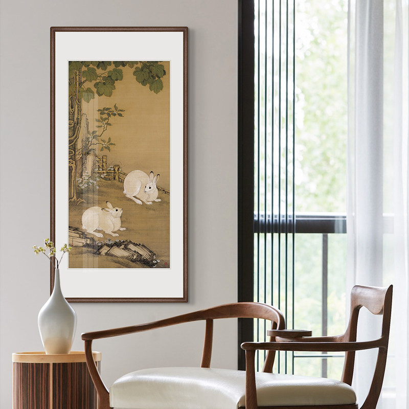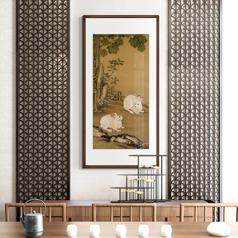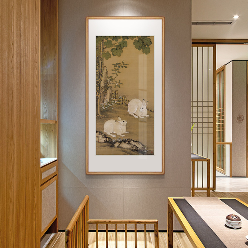 Kayakutang Cold Painting National Painting of Indus Double Rabbit Tutu Chinese Xuanguan Decorative Painting Vertical version Corridor Hallway Aisle Painting into the family painting-Taobao