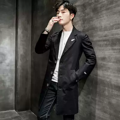 Casual long coat Korean version 2021 autumn new men's thin fashion spring and autumn men's slim long version of windbreaker
