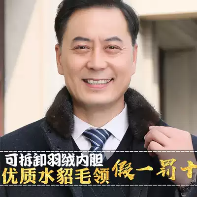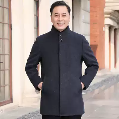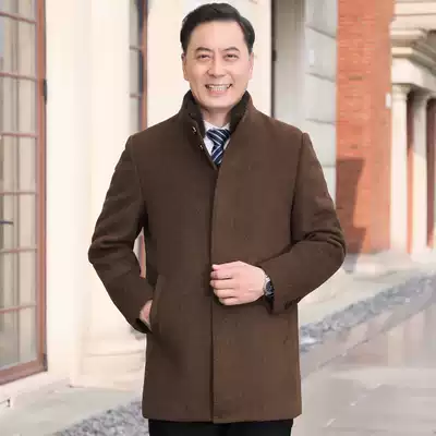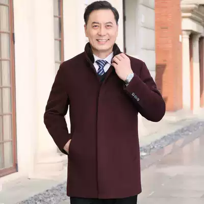 Middle-aged and elderly woolen coat men's medium and long version thick velvet father winter woolen coat grandfather wool trench coat