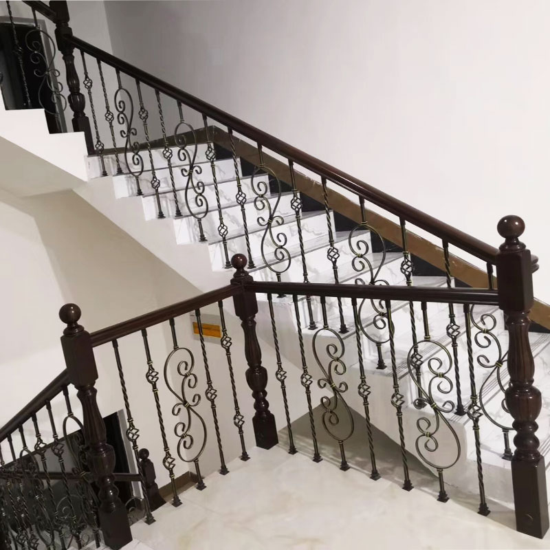 Stair handrail wrought iron wood handrail column wooden household solid wood guardrail railing flat iron red oak pine beech