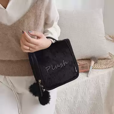 ins Wind velvet wool ball cosmetic bag women portable large capacity multifunctional skin care bag travel wash bag
