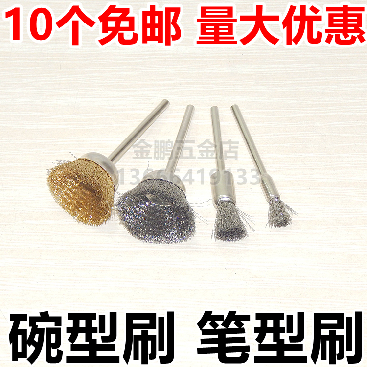 Mini brush bowl type copper wire grinding head Stainless steel wire grinding head De-embroidery Electric grinding accessories Pen brush Wire brush
